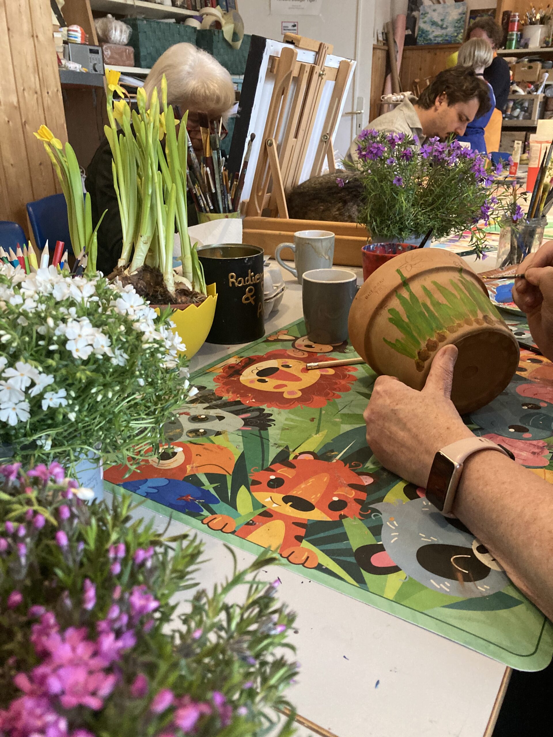 Die Malgruppe für Erwachsene lädt dazu ein, den Mittwoch ganz entspannt und kreativ starten zu lassen. In gemütlicher Atmosphäre malen wir mit unterschiedlichen Materialien – Acryl, Aquarell, Kreiden oder Tusche – je nach Lust und Laune und lassen den stressigen Alltag hinter uns.